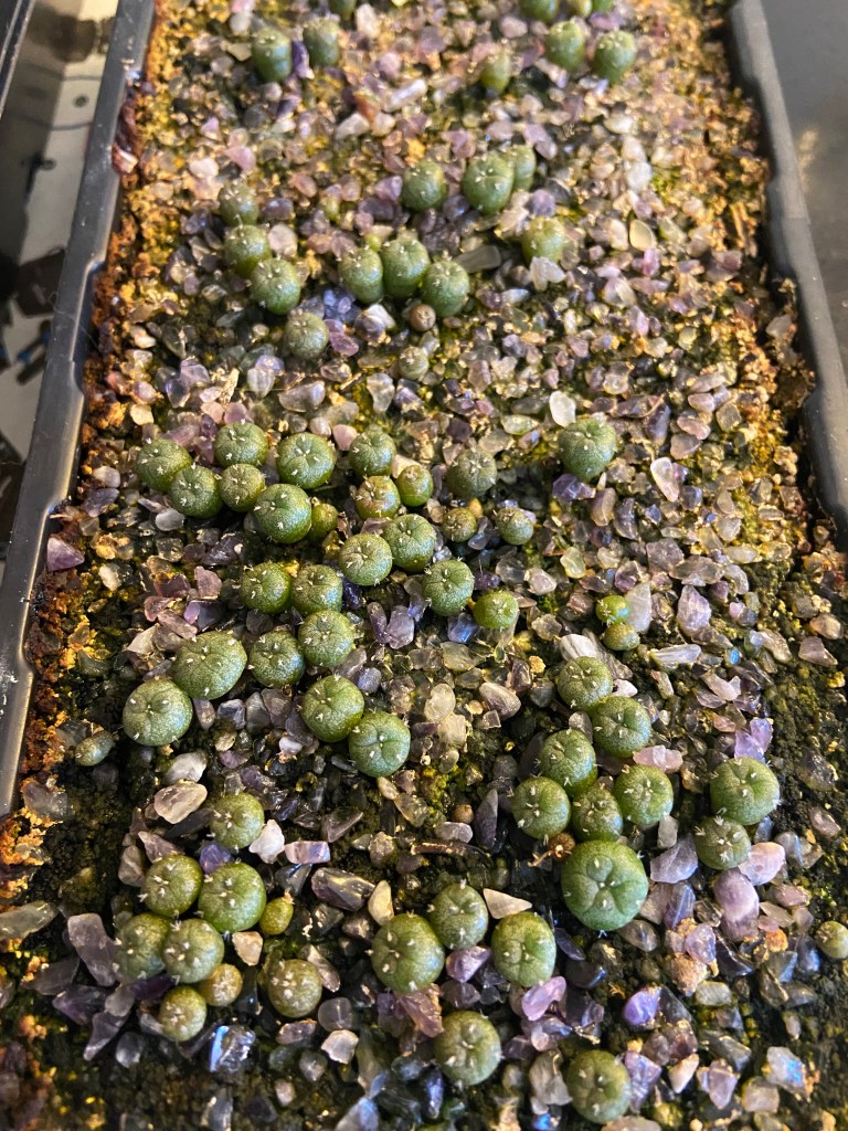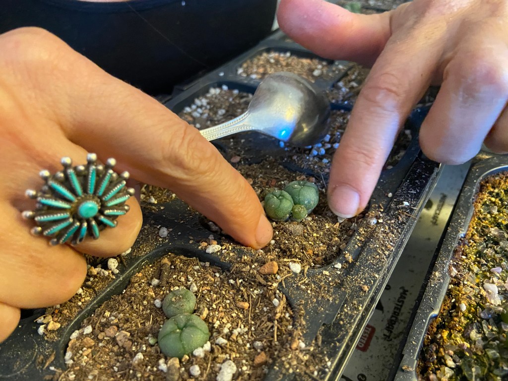 Sharing our home with medicine is a living adventure. We regularly collect seeds from our mother plants and then sow them whenever a quantity accumulates. The result is that we have several successive rounds of plantings growing under observation. It’s a good way to notice results as they differ from one planting to another. Slight changes in conditions can end up making significant differences in growth. Experimenting with alterations to soil mixes and light intensity can add to our understanding of how to best care for seedlings.