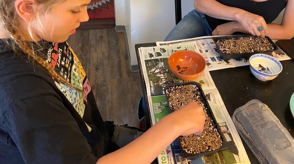 The actual planting of the seeds is a very straightforward process of simply scattering them across the moistened soil surface. More planting information available here.