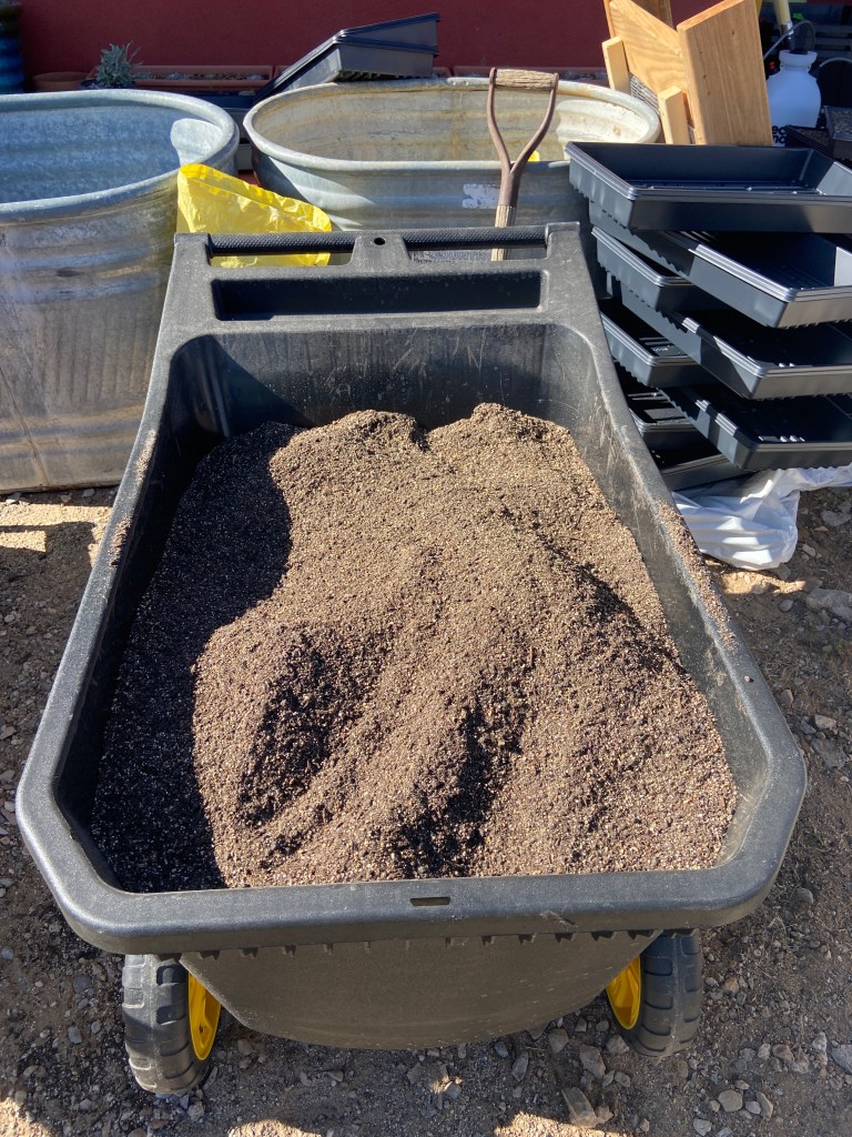 Mixed soil ready for loading into seed trays.