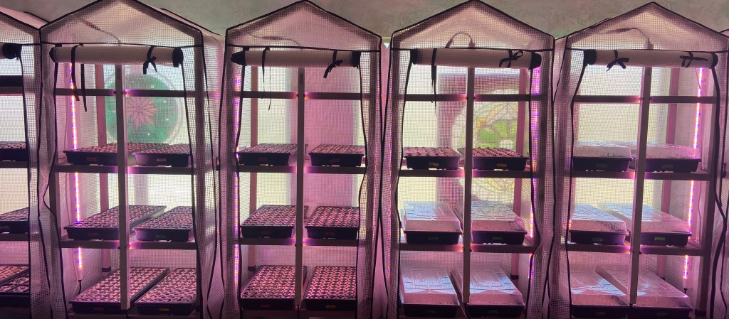 The first planting of seedlings we planted are growing strong. Our initial seed supply was not as viable as we had hoped and so we’ve actively sought new, fresher seed sources and have also been gathering our own. Our second planting looks much more successful than our first.